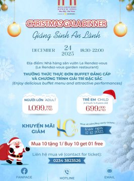 CHƯƠNG TRÌNH DẠ TIỆC “GIÁNG SINH AN LÀNH 2025” tại Khách sạn Saigon Morin. MUA 10 TẶNG 1 Hoặc tặng 10% mua trước ngày 17/12/2025 Giá vé: 1,099,000 VNĐ/người lớn và 699,000 VNĐ/trẻ...